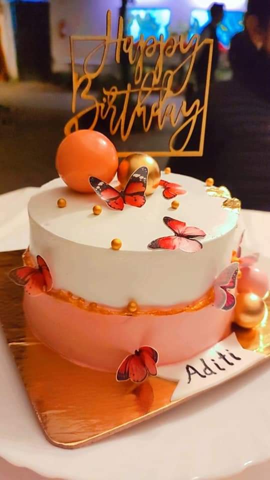 An elegant two-tone designer cake adorned with delicate butterflies, golden accents, and a stylish topper — handcrafted with love and precision by Joykas Cakes. Perfect for adding a touch of luxury and charm to any birthday celebration.